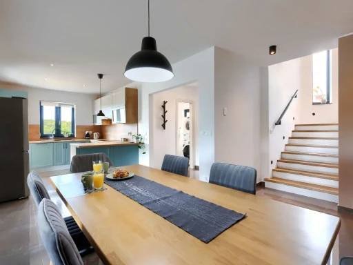 Elegantna samostojeća vila "Villa Bella" prostire se na dvije etaže i smještena je u slikovitom i mirnom zaseoku Srbani, svega 4 km od šarmantne Brtonigle i 9 km od živopisnog Novigrada. Okružena zelenilom i smještena u tihoj slijepoj ulici, ova sunčana oaza udaljena je 9 km od mora te pruža savršeno utočište za opuštanje i bijeg od svakodnevne vreve.